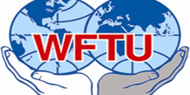 دعا اتحاد النقابات العالمي جميع النقابات العمالية وعمال القارات الخمس إلى التحرك على المستوى الدولي للمطالبة بإنهاء المخططات الخطرة للإمبرياليين والتهديدات التي يطلقونها ضد سورية وشعبها.