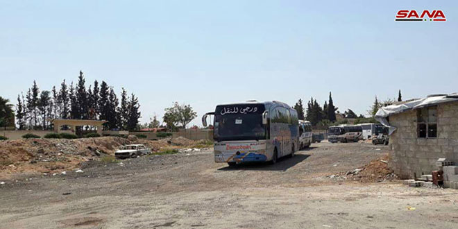 موفد سانا إلى ممر مخيم الوافدين: عملية إخراج إرهابيي “جيش الإسلام” وعائلاتهم من مدينة دوما مستمرة تمهيداً لإعلانها خالية من الإرهاب