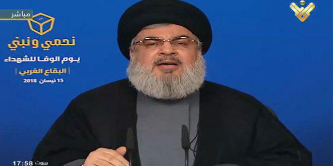 ورأى السيد نصر الله أنه مع كل انتصار جديد للجيش العربي السورى قد تكرر مسرحية كيميائي وعدوان جديد مؤكدا أن الفرنسيين والبريطانيين كانوا أتباعا للأمريكيين في هذا العدوان وليسوا أصحاب قرار مستقل وجيء بهم “للتلوين” فقط حتى يقال الغرب وأمريكا يشاركون في العدوان.