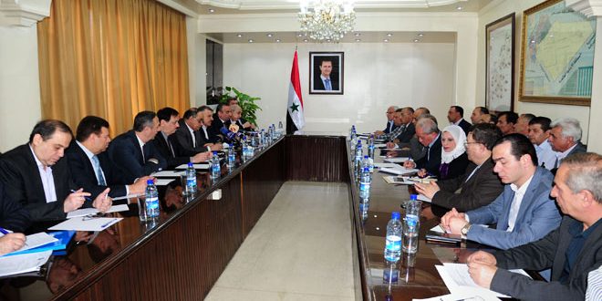 محافظ ريف دمشق المهندس علاء منير ابراهيم أكد أن اجتماع اليوم هدفه الاسراع بتأهيل البنى التحتية واعادة الخدمات بما يسهم في عودة الأهالي إلى قراهم وبلداتهم .