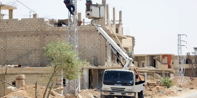 تواصل ورشات الصيانة في شركة كهرباء ريف دمشق تنفيذ خطتها الإسعافية لإيصال التيار الكهربائي إلى بلدات الغوطة الشرقية من خلال تأمين مصادر تغذية احتياطية إلى جانب العمل على تأمين تغذية دائمة.