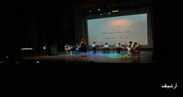 وتضمن الحفل فقرات عزف جماعي لكبار الموسيقيين إضافة لعزف منفرد على آلات العود والغيتار والبيانو والكمان والقانون والفلوت والإيقاع قدم من خلالها كل طفل نفسه كعازف متحد بأنغام آلته المفضلة.