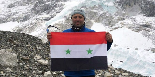 ورفع الحصري العلم الوطني لدى وصوله الى مخيم كتماندو الواقع عند ارتفاع 5400 متر في جبال هيمالايا بعد رحلة شاقة وجميلة.