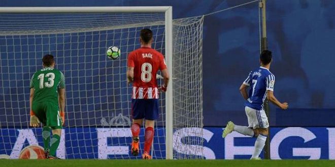 تلقى أتليتيكو مدريد خسارة كبيرة أمام مستضيفه المتألق ريا ل سوسيداد بنتيجة 3-صفر اليوم ليصبح برشلونة متصدر دوري الدرجة الأولى الإسباني لكرة القدم على بعد انتصار واحد من التتويج بلقبه الـ “25”.