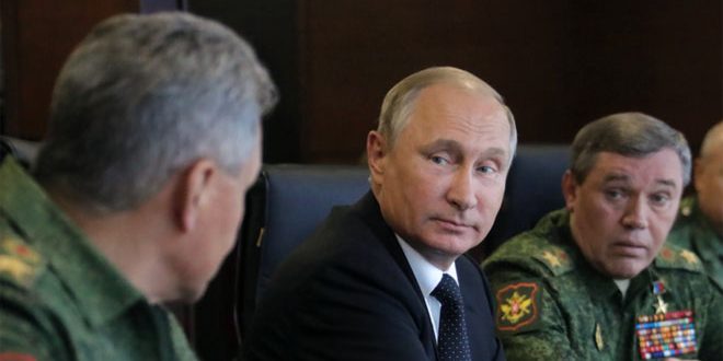 بحث الرئيس الروسي فلاديمير بوتين مع وزير الدفاع سيرغي شويغو ورئيس هيئة الأركان العامة للقوات المسلحة فاليري غيراسيموف الأوضاع في سورية.