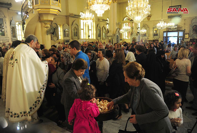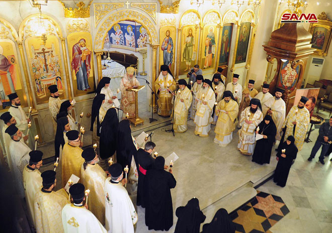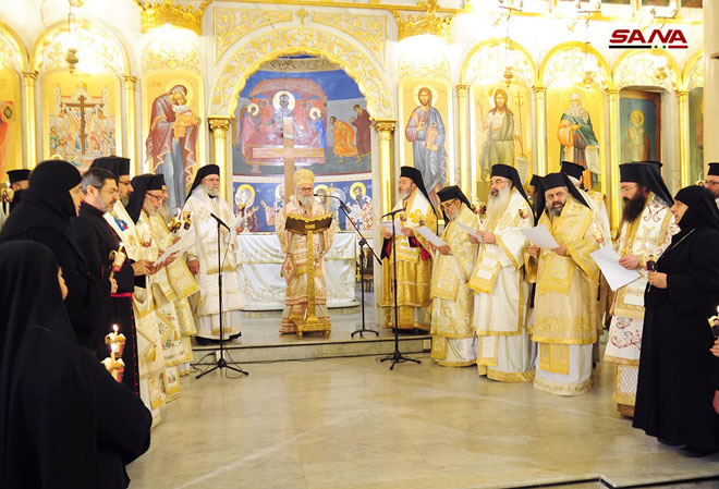 وتلا القداس الذي أقيم في كنيسة الصليب المقدس للروم الأرثوذكس بدمشق صلوات على نية عودة المطرانين وفك أسرهما وإحلال السلام في ربوع سورية.