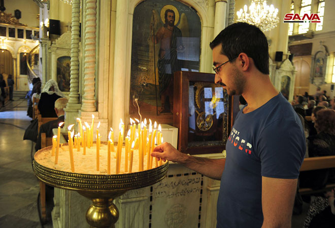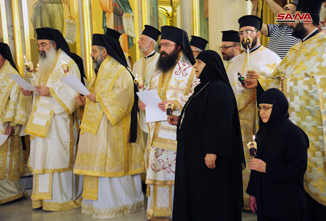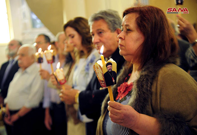 وأكد البطريرك يازجي أن سورية هي أرض المسيحية الأولى ونحن متمسكون بالوجود هنا مهما حاولوا أن يرهبونا فنحن مغروسون في هذه الأرض كما انغرس فيها يوما ما المسيح.