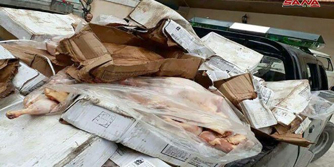 أتلفت مديرية الشؤون الصحية في مجلس مدينة حلب 1050كغ من الفروج الفاسد والمهرب تم ضبطها ومصادرتها اليوم بالتعاون مع قسم شرطة ميسلون وذلك ضمن مستودع في حي قسطل حرامي بمنطقة الشابورة.