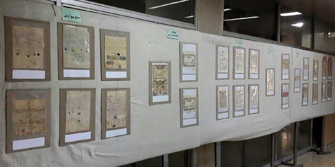 وشملت المعارض التي افتتحت مساء اليوم معرضا للوثيقة التاريخية يضم أكثر من 100 وثيقة ومخطوطة جمعها الباحث جمال مهنا من أيام الاحتلال العثماني والفرنسي وصولا إلى عهد الوحدة بين سورية ومصر.