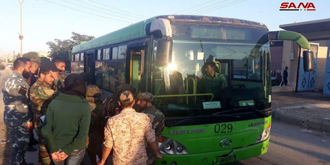 وتم خلال الأيام الماضية اخراج دفعتين من الإرهابيين وعائلاتهم من منطقة القلمون الشرقي عبر 65 حافلة.