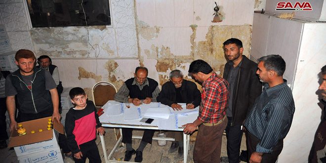 ممثل الهلال الأحمر العربي السوري في زملكا أحمد هيكل قال إنه “يتم يوميا توزيع نحو 220 سلة بموجب دفتر عائلة أو هوية شخصية علما أن عدد السكان يصل إلى 5 آلاف نسمة حاليا.