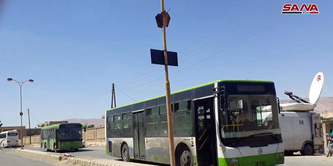 ولف المراسل إلى أن عملية إخراج الحافلات تمت بعد قيام الجهات المختصة بتفتيشها بشكل دقيق لمنع الإرهابيين من تهريب أسلحة وذخيرة ومفخخات خشية استخدامها أثناء تحركهم باتجاه شمال سورية لاتهام الدولة السورية.