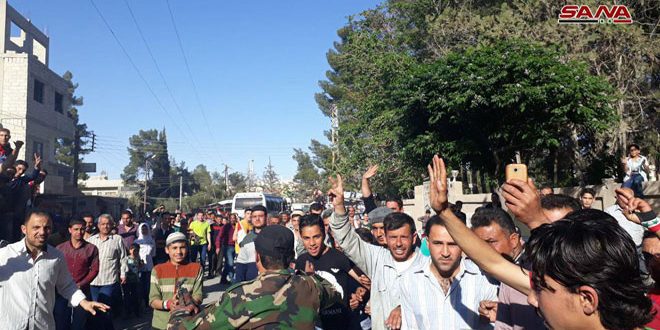رفع العلم الوطني في جيرود واحتفالات الأهالي بإخراج الإرهابيين من البلدة