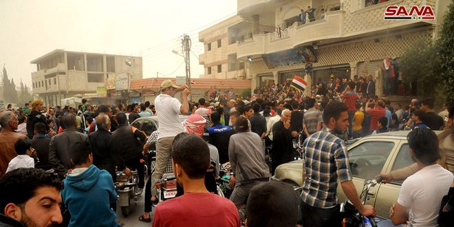 احتشد المئات من أهالي بلدات الرحيبة والناصرية والعطنة بالقلمون الشرقي في الشوارع والساحات العامة ترحيبا بدخول الجيش العربي السوري وقوى الأمن الداخلي إلى بلداتهم وإعادة الأمن والاستقرار إليها بعد إخراج الإرهابيين وعائلاتهم الرافضين لاتفاق المصالحة إلى شمال سورية.