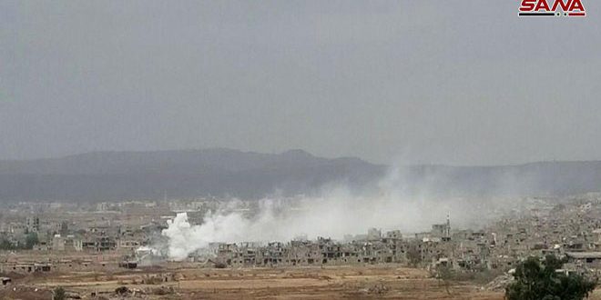 ولفت مراسل سانا الحربي إلى أن وحدات الجيش تنفذ عمليات دقيقة ومعقدة بالتنسيق مع الرصد الجوي لتفكيك وقطع خطوط الإمداد والتواصل بين الإرهابيين في منطقة الحجر الأسود.