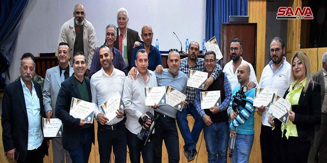 كرمت الجمعية الحرفية للمصورين بحمص 16 مصورا حربيا من مختلف الوسائل الإعلامية المحلية والعربية الذين وثقوا بعدسات كاميراتهم رغم المخاطر أصعب لحظات عاشتها المدينة فبعضهم ارتقى شهيدا وآخرون خسروا جزءا من أجسادهم وذلك في قاعة الدكتور سامي الدروبي بالمركز الثقافي بحمص.