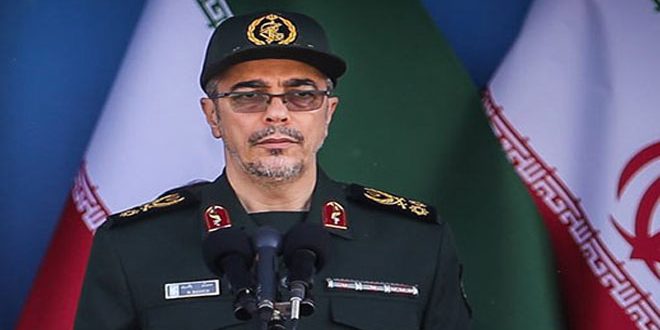 أكد رئيس هيئة الأركان العامة للقوات المسلحة الإيرانية اللواء محمد باقري أن استراتيجية إيران الدفاعية والقائمة على التصدي لمخططات الاستكبار ودعم الأحرار في العالم غير قابلة للتغيير.