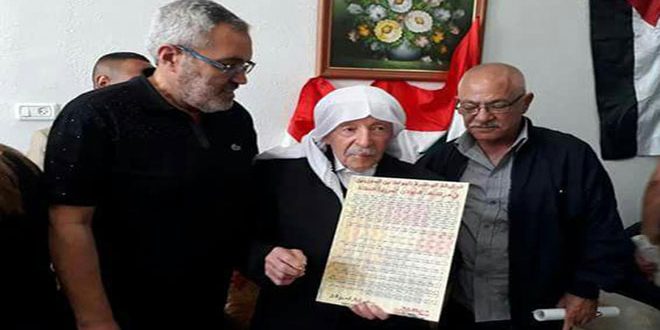 بمشاركة عدد من الشخصيات الوطنية من الأراضي الفلسطينية المحتلة ومجموعة من الحراك الشبابي في الداخل المحتل ونخبة من الشخصيات الوطنية في الجولان المحتل كرمت اللجنة الشعبية للدفاع عن سورية اليوم الأسير المحرر المناضل أحمد علي القضماني من أبناء مجدل شمس المحتلة.
