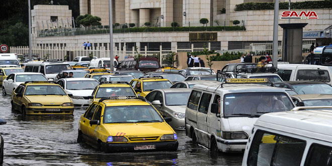 وذكر مصدر في قيادة شرطة دمشق في تصريح لـ سانا أن الأمطار الغزيرة أدت إلى تجمع بركة كبيرة من المياه في مشروع دمر قرب دوار الكنيسة ما أدى إلى غرق سيارة كانت مركونة في المكان وتم سحبها.