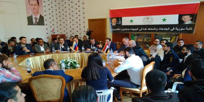 عقد فرع الاتحاد الوطني لطلبة سورية في روسيا وبلدان رابطة الدول المستقلة مؤتمره السنوي اليوم في مقر السفارة السورية في موسكو تحت شعار “طلبة سورية في الجامعات والمعاهد كما في الجبهات صامدون منتصرون” وناقش سبل حل المشاكل والحد من الصعوبات التي تعترض حياة الطلاب الدراسية في الجامعات والمعاهد الروسية.
