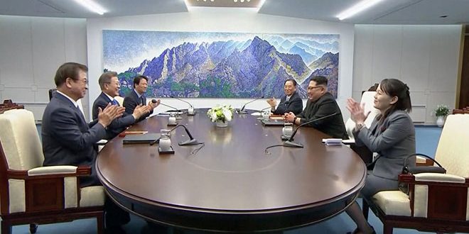وكان رئيسا الكوريتين عقدا يوم الجمعة الماضى اجتماع قمة بينهما في قرية بانمونجوم الحدودية وأكدا في بيان مشترك عزمهما على افتتاح عصر جديد للسلام المستدام والمصالحة بين البلدين ووضع حد للحرب في شبه الجزيرة الكورية وإنهاء عهد الانقسام والمواجهة في أسرع وقت ممكن.