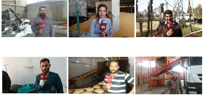 عمر عميرة عامل في الفرن الاحتياطي قال لـ سانا: أنه ورفاقه على رأس عملهم لإنتاج رغيف الخبز وتأمين قوت المواطن بشكل يومي فيما أشار سائق سيارة النظافة فؤاد حمود إلى أن العمل مستمر ولا يتوقف بهدف ترحيل القمامة من القرى إلى معمل النفايات للحفاظ على نظافة المدينة وصحة المواطنين.