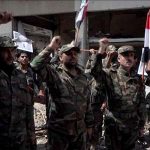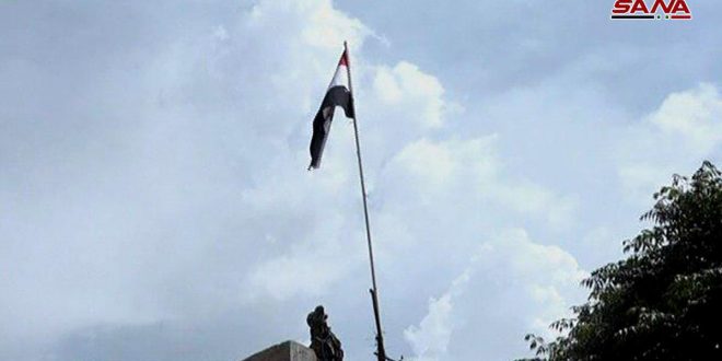 2018-05-01ريف دمشق-سانارفع عناصر من الجيش العربي السوري العلم الوطني فوق مبنى المحكمة في مخيم اليرموك. 2018-05-01admin