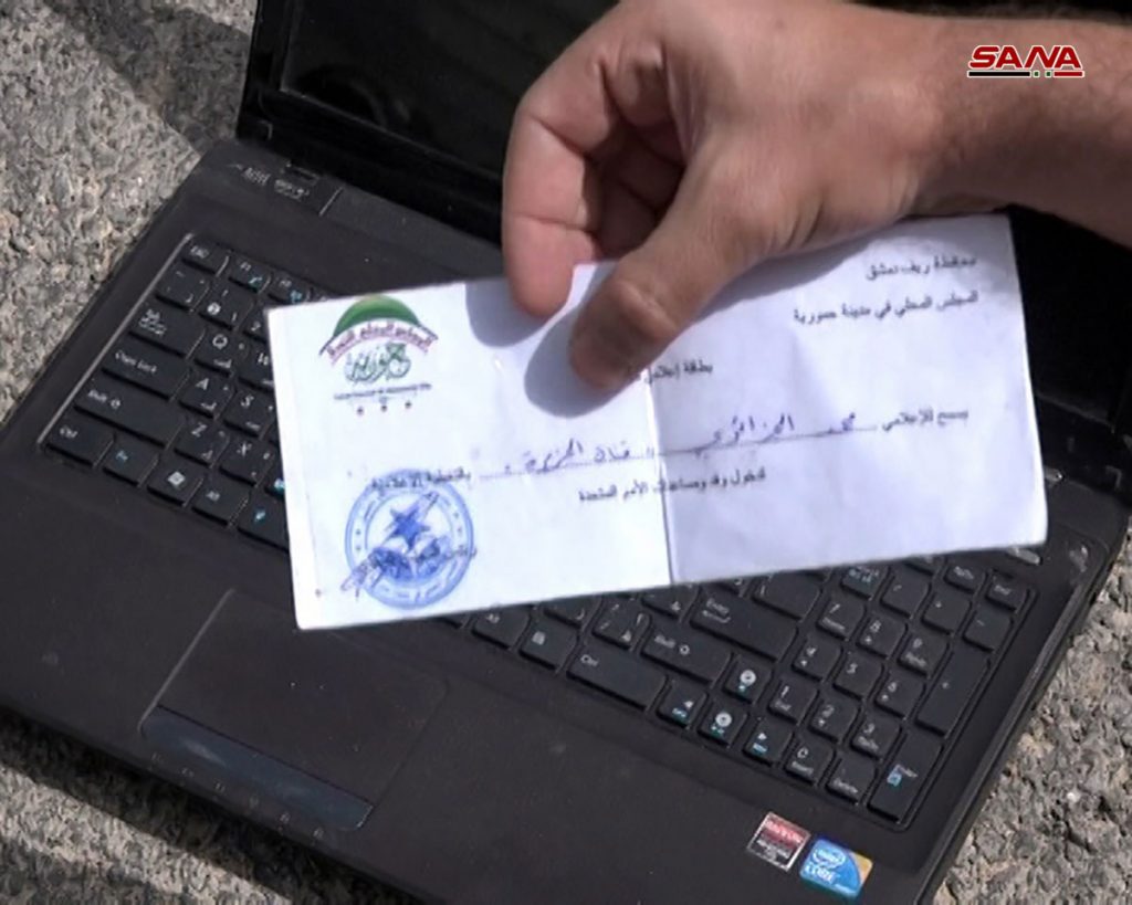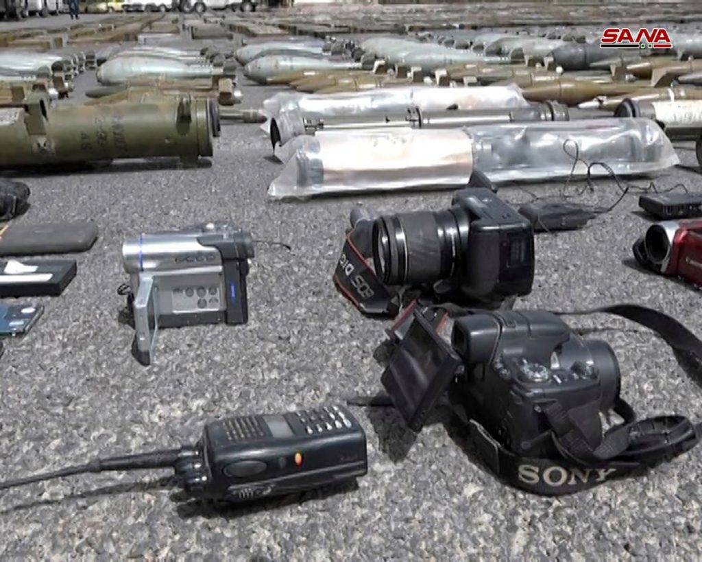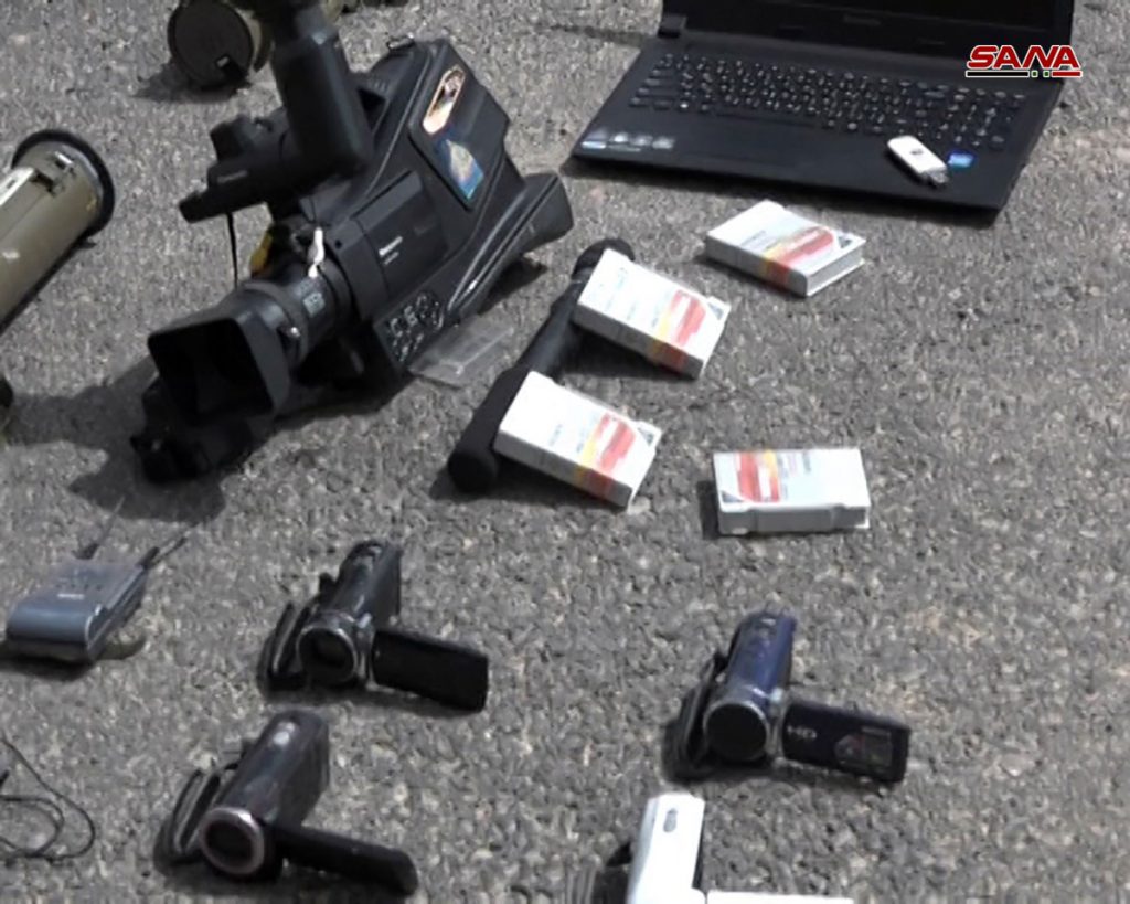 وفي إطار متصل عثرت عناصر الهندسة في الجهات المختصة خلال استكمال عمليات تمشيط المناطق المحررة في الغوطة الشرقية من التنظيمات الارهابية على مركز إعلامي تابع لقناة “الجزيرة” القطرية التي كانت تبث منه سمومها وفبركاتها في سياق ضلوعها المباشر في سفك الدم السوري كإحدى القنوات الإعلامية المعادية للسوريين ودولتهم.