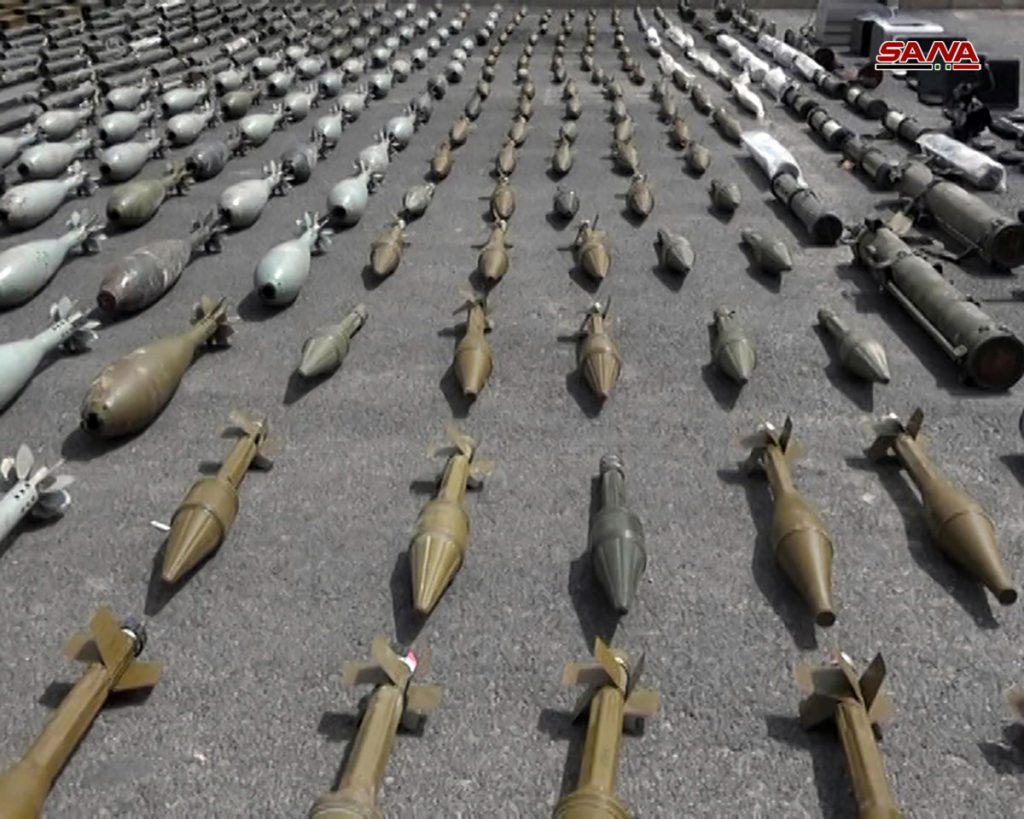 في إطار العمليات المتكاملة من قبل وحدات الجيش العربي السوري والجهات المختصة لقطع خطوط إمداد التنظيمات الارهابية تم اليوم إحباط محاولة إرهابيين تهريب كميات كبيرة من الأسلحة والذخيرة بعضها إسرائيلي الصنع من المنطقة الجنوبية إلى المجموعات الإرهابية المنتشرة في ريف حمص الشمالي.