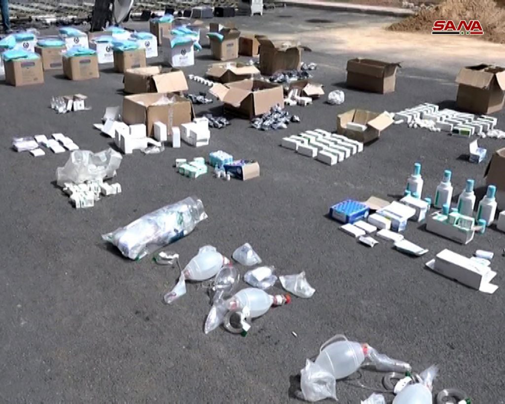 وأفاد مراسل سانا الحربي بأنه بناء على معلومات استخبارية دقيقة نفذت احدى دوريات الجهات المختصة كمينا على أحد المحاور المحتملة لتحرك الارهابيين عبر البادية انطلاقا من المنطقة الجنوبية تم خلاله ضبط شحنة كبيرة من الذخائر المتنوعة والاسلحة والأدوية إسرائيلية الصنع كانت متجهة إلى المجموعات الارهابية بريف حمص.