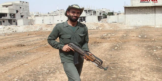 متنقلا على جبهات مخيم اليرموك والقدم والحجر الأسود قضى الجندي الأب خمس سنوات منذ أن التحق بصفوف الجيش العربي السوري وما زال يمتلك العزيمة والتصميم والإرادة يقول وهو يمتشق بندقيته لمراسلة سانا: “الجبهة محتدمة.. سنبقى بارض المعركة حتى نحرر البلد ونرتاح من الإرهابيين”.
