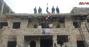 رفع علم الجمهورية العربية السورية على مبنى ناحية الحجر الأسود