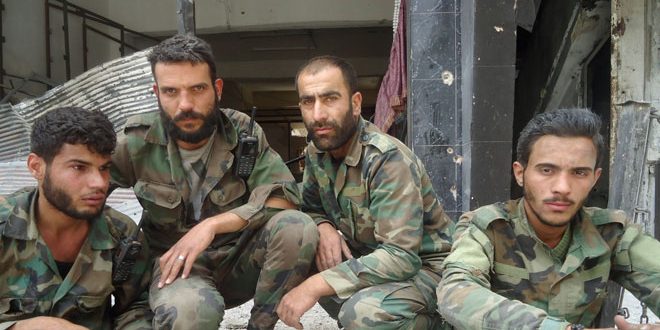 وسط العديد من الجنود تحلقوا حوله بوجوه حزينة ترتسم على محياهم علامات التصميم والحزم بالكاد استطاع مؤيد الرد على سؤال مراسلة سانا.. كم تحب باسل ليجيب.. “كثيرا .. جمعتنا الجبهات منذ الصيف الماضي وخضنا معا معارك في ريف السلمية بحماة وفي قرية الريحان بالغوطة الشرقية وهنا في الحجر الأسود ..كان سندي وكنت سنده”.