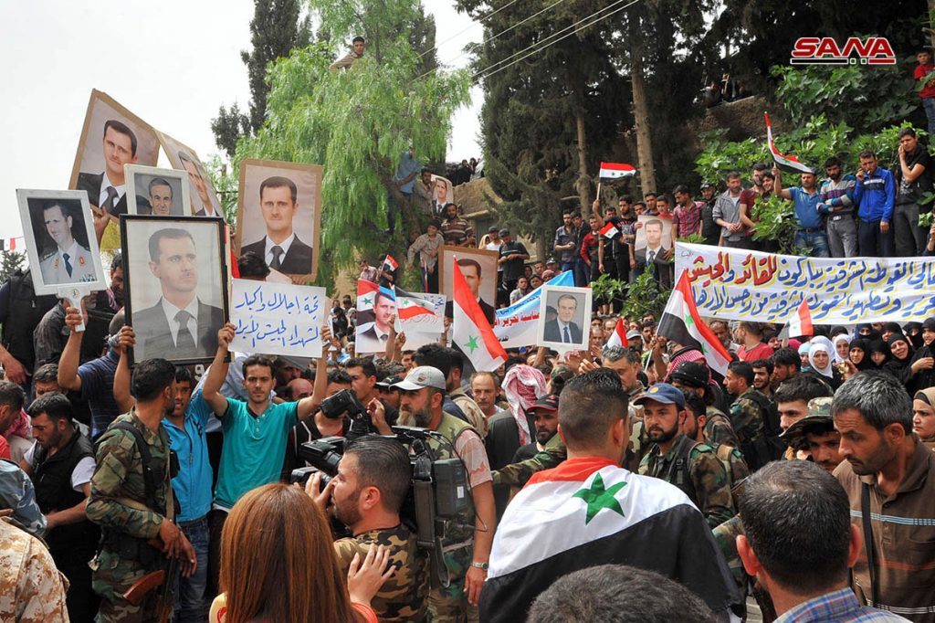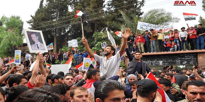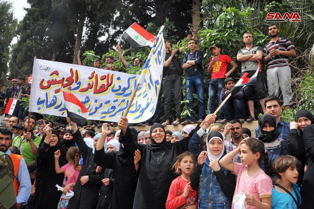 ووجه ونوسة باسم أهالي الغوطة دعوة “لكل من سار بالطريق الخاطئ أن يعود إلى حضن الوطن ليكون مع جيشه وأبناء بلده وعدم اتباع التنظيمات الإرهابية التي تفر امام الجيش العربي السوري وانتصاراته” مشدداً على أن “الخزي والعار سيلحق بملوك النفط والرمال الذين خانوا فلسطين ودمروا سورية والعراق وليبيا واليمن وستبقى سورية بقيادتها صامدة منتصرة”.