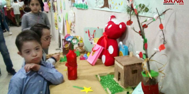 أعمال يدوية ولوحات فنية متعددة شكلت بتناغمها محتوى معرض طلاب معهد ذوي الإعاقة الذهنية الذي افتتح اليوم في صالة المركز الثقافي العربي بمدينة السويداء.