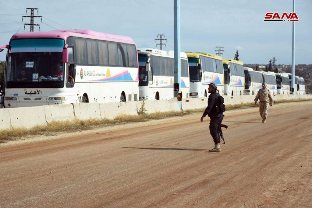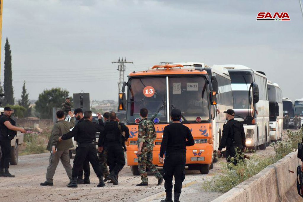 2018-05-07 62 حافلة تقل المئات من الإرهابيين وعائلاتهم من ريفي حمص الشمالي وحماة الجنوبي 2018-05-07manhal