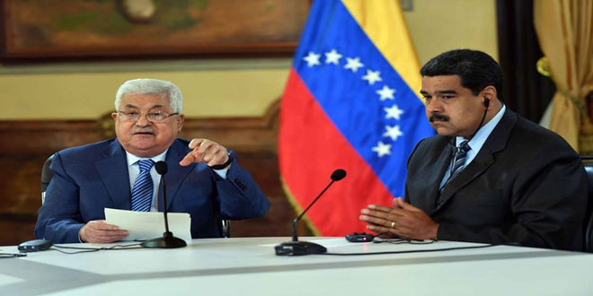 وأعرب مادورو عن “الأمل في استئناف المفاوضات عاجلاً أم آجلاً على أساس القانون الدولي وبتفويض من الأمم المتحدة كي تستعيد فلسطين أراضيها المحتلة”.