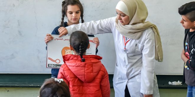 أكثر من 32 مدرسة في دمشق شملتها حملة التوعية الصحية التي قام بها فريق “الكريات الحمراء” في كليات الطب البشري وطب الأسنان والصيدلة بجامعة دمشق للعام الرابع على التوالي حيث تأتي الحملة التي نفذت بالتعاون مع جامعة الشام الخاصة استكمالا لنشاطات الفريق الصحية والتوعوية الرامية لتعزيز ثقافة المجتمع حول الصحة العامة.