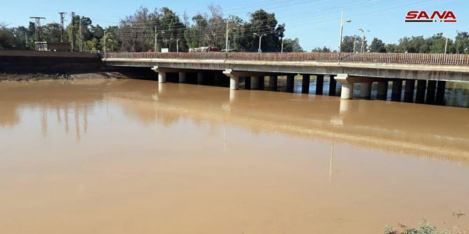 وشهد نهرا الخابور والجغجغ اليوم ارتفاعا في منسوب المياه وازدياد نسبة التدفق في مركز مدينة الحسكة.