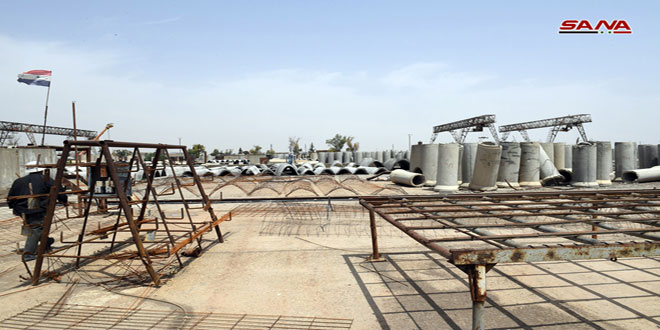 معمل إنتاج القطع البيتونية مسبقة الصنع في ناحية كويرس بريف حلب الشرقي أحد أهم المنشآت الحيوية التي عادت للعمل تدريجيا وأسهم من خلال إنتاجه في تسريع اعمال صيانة قنوات الري من خلال تصنيع المواد اللازمة لذلك وإصلاح قنوات الري “الفلومات”.
