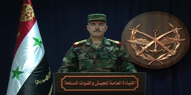 وأشارت القيادة العامة للجيش في بيان تلقت سانا نسخة منه إلى أن تصدي أبطال الجيش العربي السوري للعدوان الإسرائيلي الجديد “يؤكد مرة جديدة يقظتهم وجاهزيتهم للدفاع عن عزة الوطن وسيادته ضد أي عدوان”.
