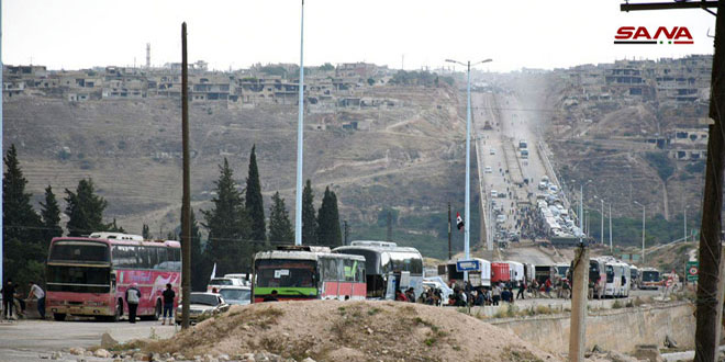 وتم يومي الاثنين والثلاثاء الماضيين إخراج دفعتين من الإرهابيين عبر 120 حافلة نقلتهم إلى شمال سورية قبل أن يتوقف إخراج الإرهابيين خلال الأيام الثلاثة الماضية بسبب خلافات بينهم.