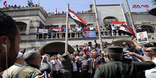 بالصور.. رفع العلم الوطني فوق المؤسسات الحكومية ببلدة ببيلا