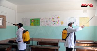 ريف دمشق-سانا بهدف تأمين بيئة آمنة للطلاب قبل عودتهم إليها تتواصل حملات التعقيم والتنظيف في …