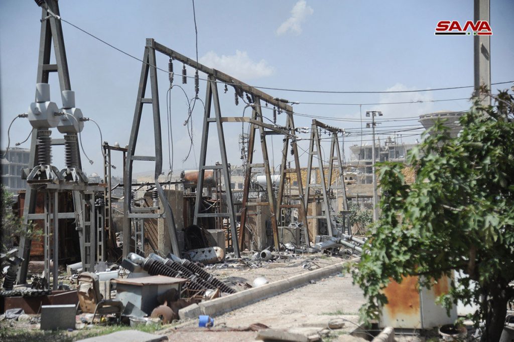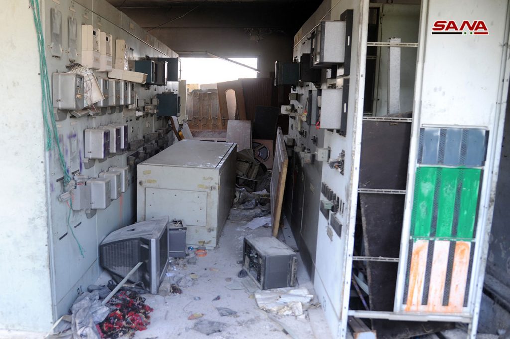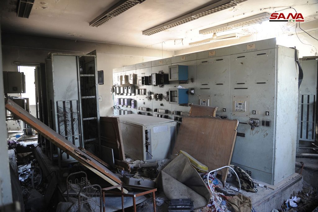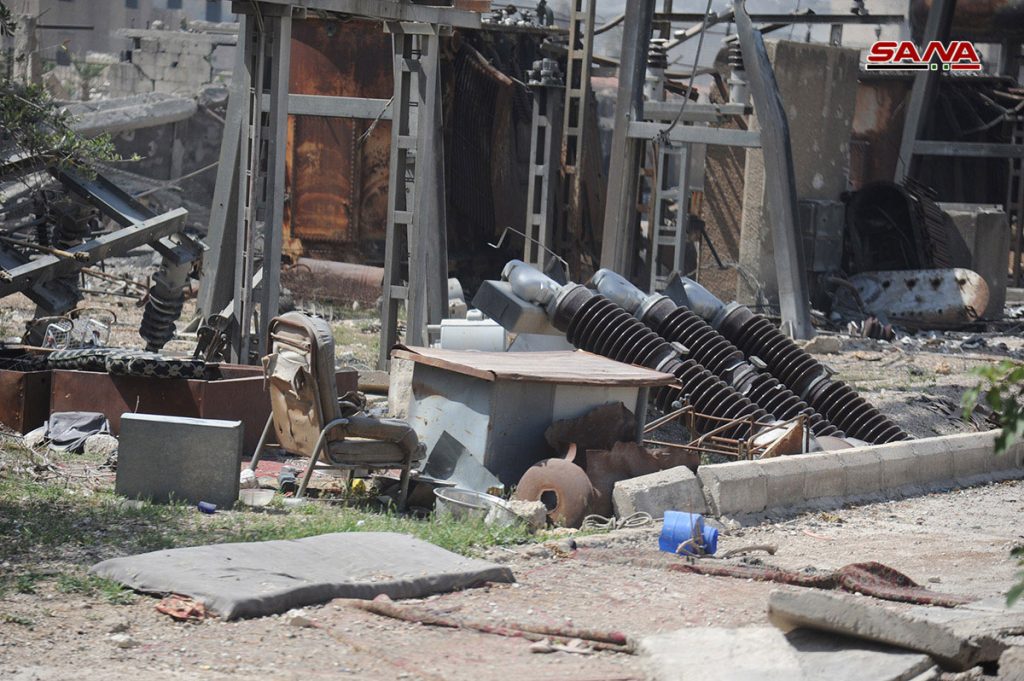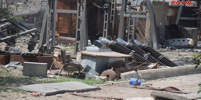 الأضرار التي لحقت بمحطة تحويل الكهرباء والمدارس في الحجر الأسود نتيجة اعتداءات الإرهابيين