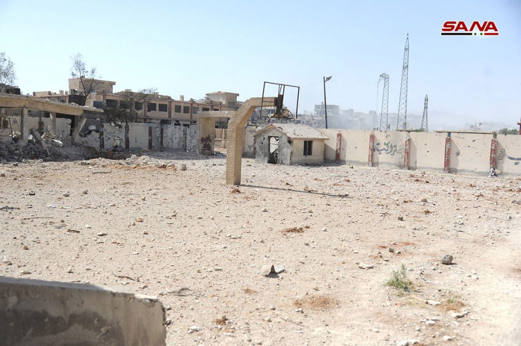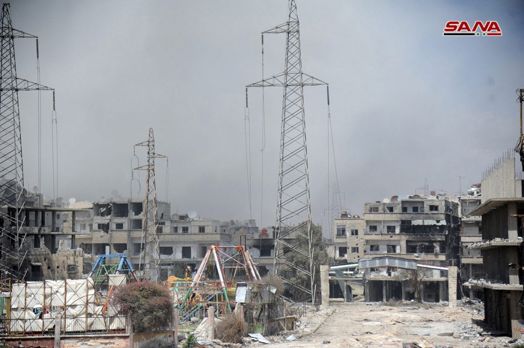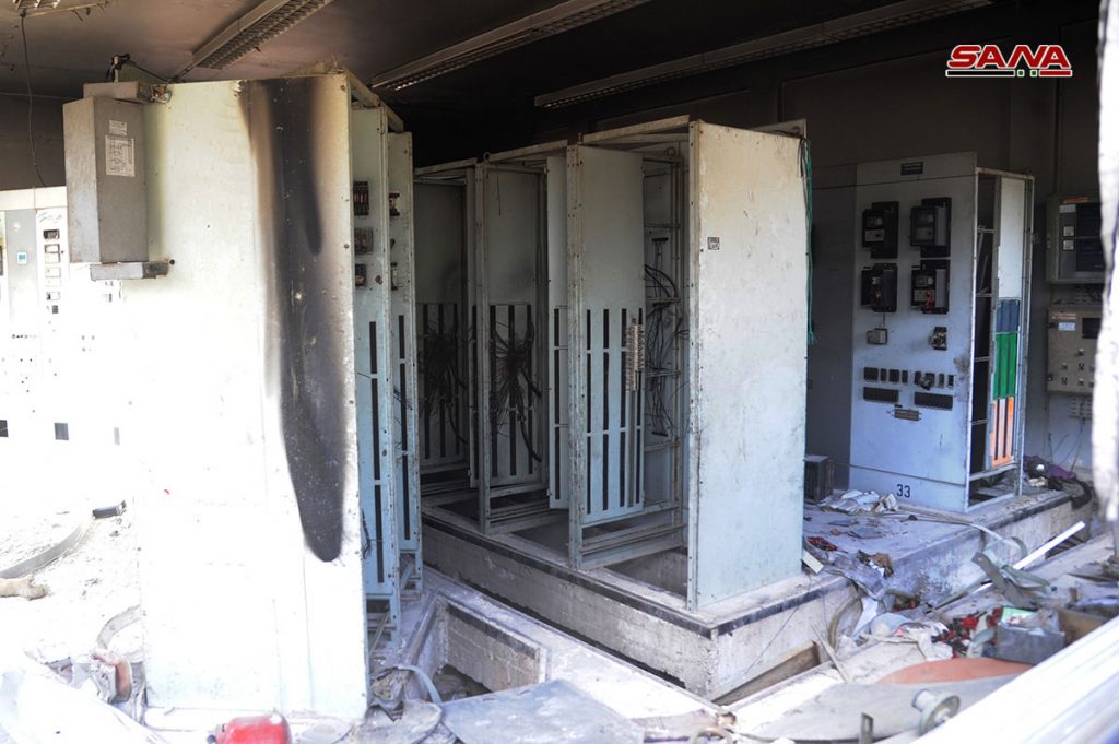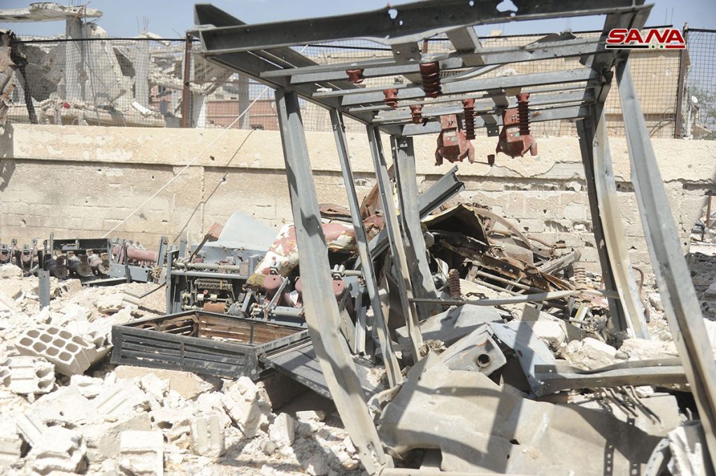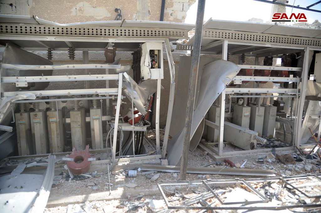 الأضرار التي لحقت بمحطة تحويل الكهرباء والمدارس في الحجر الأسود نتيجة اعتداءات الإرهابيين