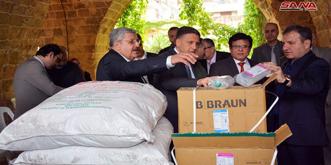 قدمت دولة الهند اليوم مساعدات إنسانية منها 2200 طن من المواد الغذائية و70 طنا من الأدوية والمستلزمات الطبية ليتم توزيعها على المشافي والعائلات المحتاجة في سورية.