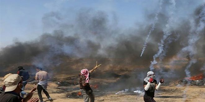 ونقلت وكالة وفا للأنباء عن مصادر طبية فلسطينية قولها إن شابة فلسطينية أصيبت برصاصة في بطنها أطلقها عليها جنود الاحتلال خلال مشاركتها بفعالية حول العودة شرق مدينة غزة.