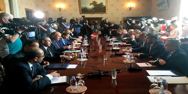 بحث وزير الخارجية الروسي سيرغي لافروف ونظيره المصري سامح شكري تطورات الأوضاع في المنطقة وخاصة في سورية وليبيا واليمن وفلسطين المحتلة وذلك في إطار اجتماعات صيغة 2 زائد 2 التي تضم وزيري دفاع وخارجية البلدين.