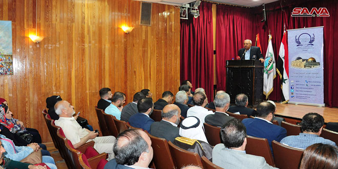 أقامت مؤسسة القدس الدولية -سورية مهرجانا خطابيا في الذكرى السبعين لنكبة فلسطين والعرب استنكر المشاركون فيه إعلان الرئيس الأمريكي دونالد